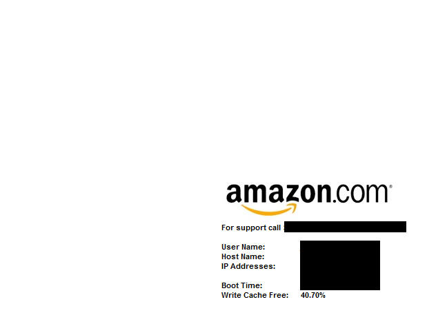 But if your company chooses to use a standard wallpaper with no gradient, like a solid white background for example, just edit the background of your logo to match the color of the background and save it as a jpg. Add it to BGInfo and it will look perfect. Here is the Amazon logo (jpg with white background) with BGInfo set to white for the background wallpaper: