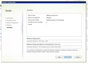 27. Enter the name of the server. For this example I have a brand new Server 2008 R2 server created. It is clean OS with nothing on it yet. Give the Catalog a name and description and hit Finish.